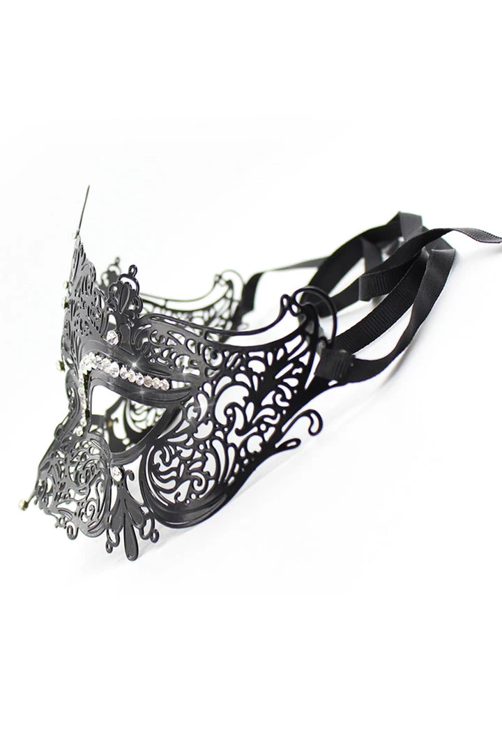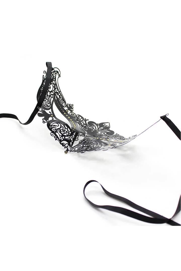 Make them wonder with this black, embroidered masquerade style eye mask.