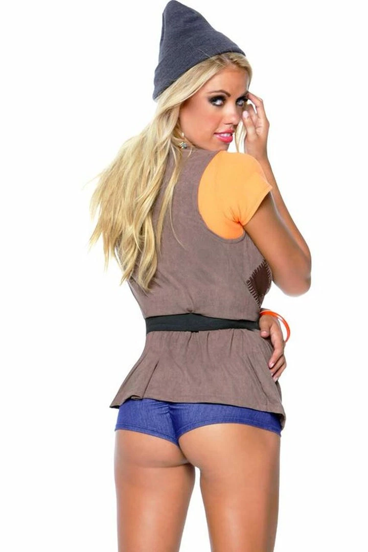 High ho, high ho, it’s off to the party we go! This four piece sexy Dwarf Fairy Tale Costume is certainly unlike any of those you might remember from the fairy tales of your childhood. Snow White won’t be the only one getting the second, or third or fourth glances from party revelers. The whistle coming from your mouth will beckon those near you to follow you to your private office for some consultation.