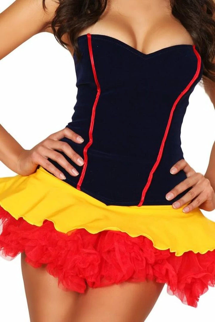 This costume is definitely not white as snow and no one is going to think that you are either, but that’s not a bad thing because you’re going to have a lot of fun for the night. This sexy corset and mini skirt are brightly colored and come with a bright satin ribbon. You’ll look like just the person someone wants to take to their hideaway in the woods (and you’ll be more than happy to go).