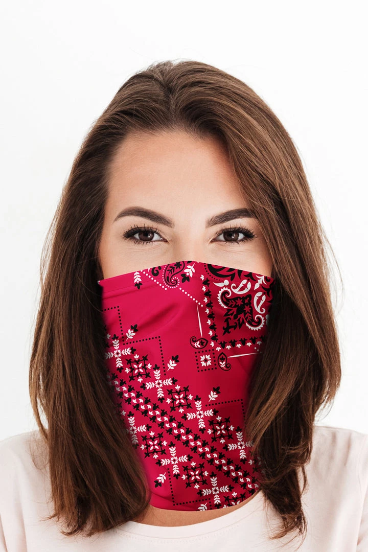 Stay safe this Halloween and complete your costume look with this red bandana print gaiter mask.