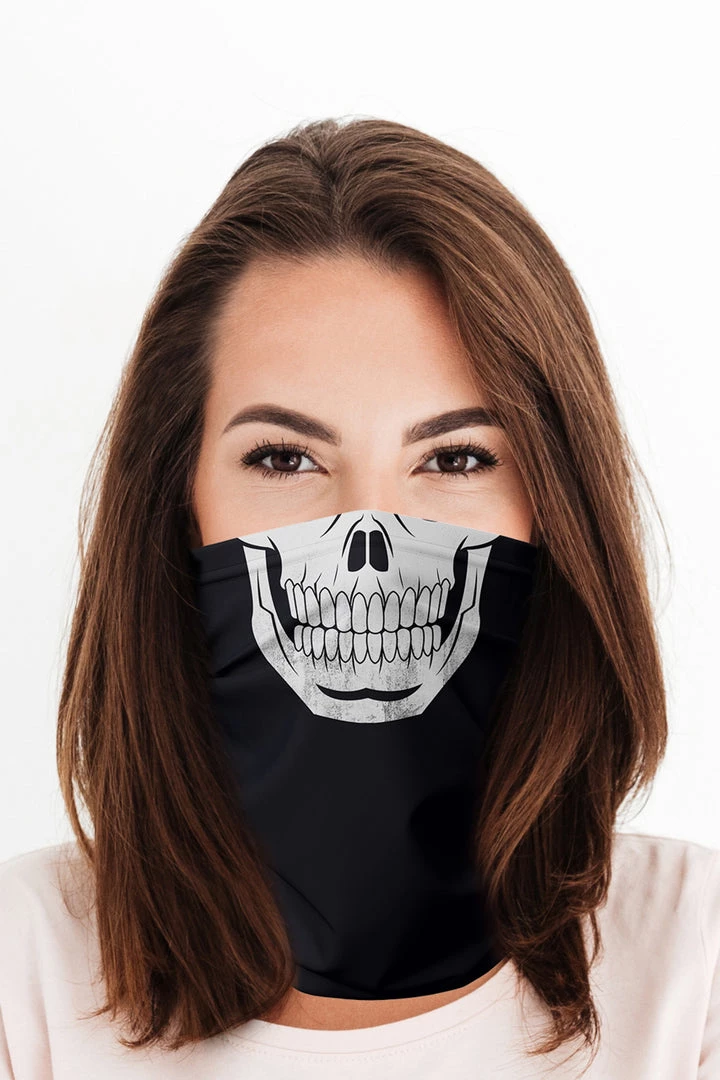 Stay safe this Halloween and complete your costume look with this skeleton print gaiter mask.