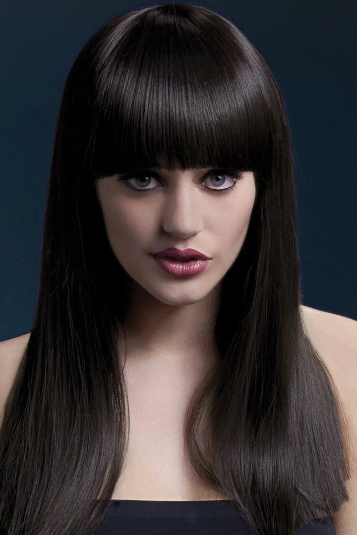 - Professional Quality Synthetic 19” Long Styleable Blunt Cut Wig with Fringe