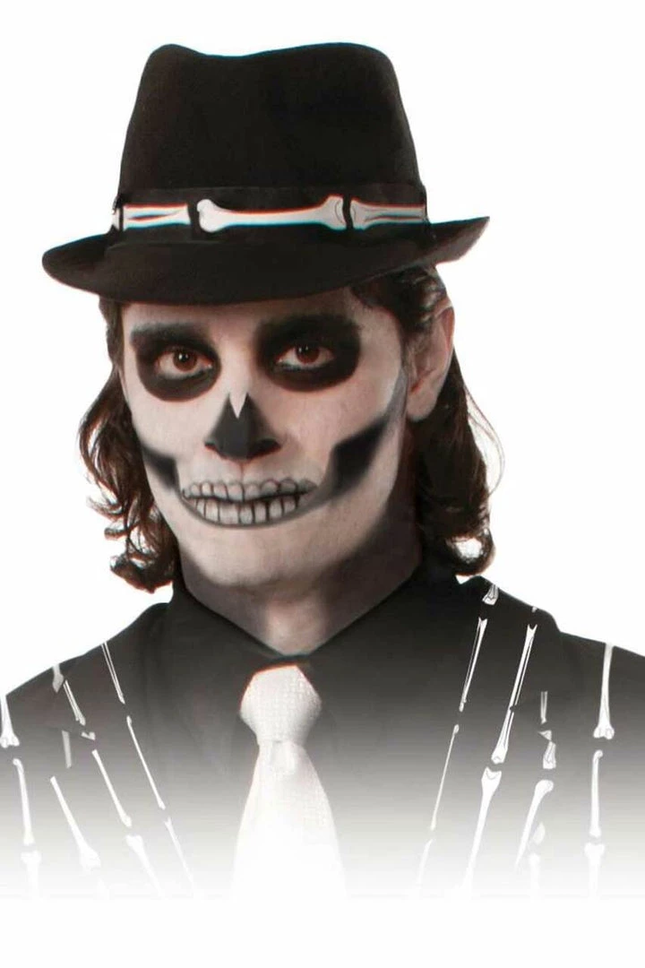 Celebrate the Day of the Dead or bring any DIY costume to life with this black men’s hat with white bone accents. When you’re looking for the perfect accessory to finish off your look, this stunning fedora keeps you looking sleek and mysterious to charm all your admirers at any Halloween party or club event!