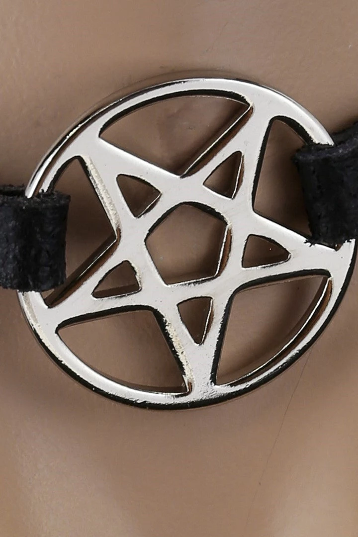 Cast your spell with this witchy Pentagram Leather Choker that features a women’s choker with thin 1/4″ leather choker and large metal pentagram medallion.