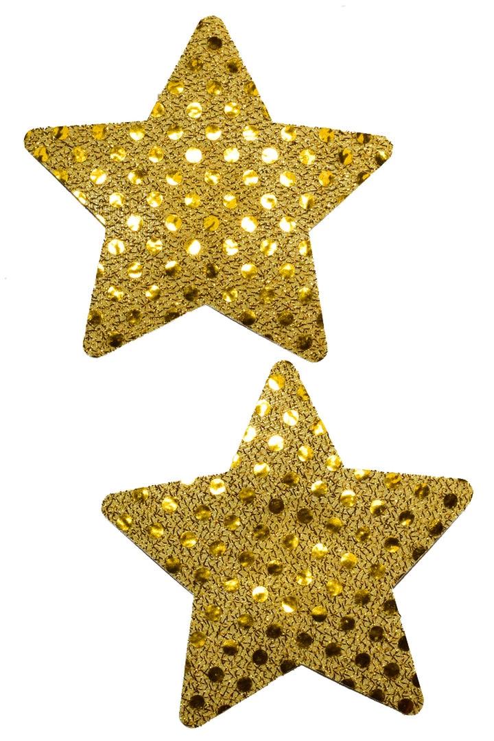 Gold Star Sequin Nipple Pasties. Features self adhesive tape, just peel and stick on clean, dry, oil-free skin!