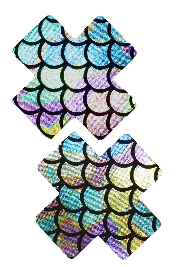 Metallic Mermaid Double X Nipple Pasties. Feature self adhesive tape, just peel and stick on clean, dry, oil-free skin.