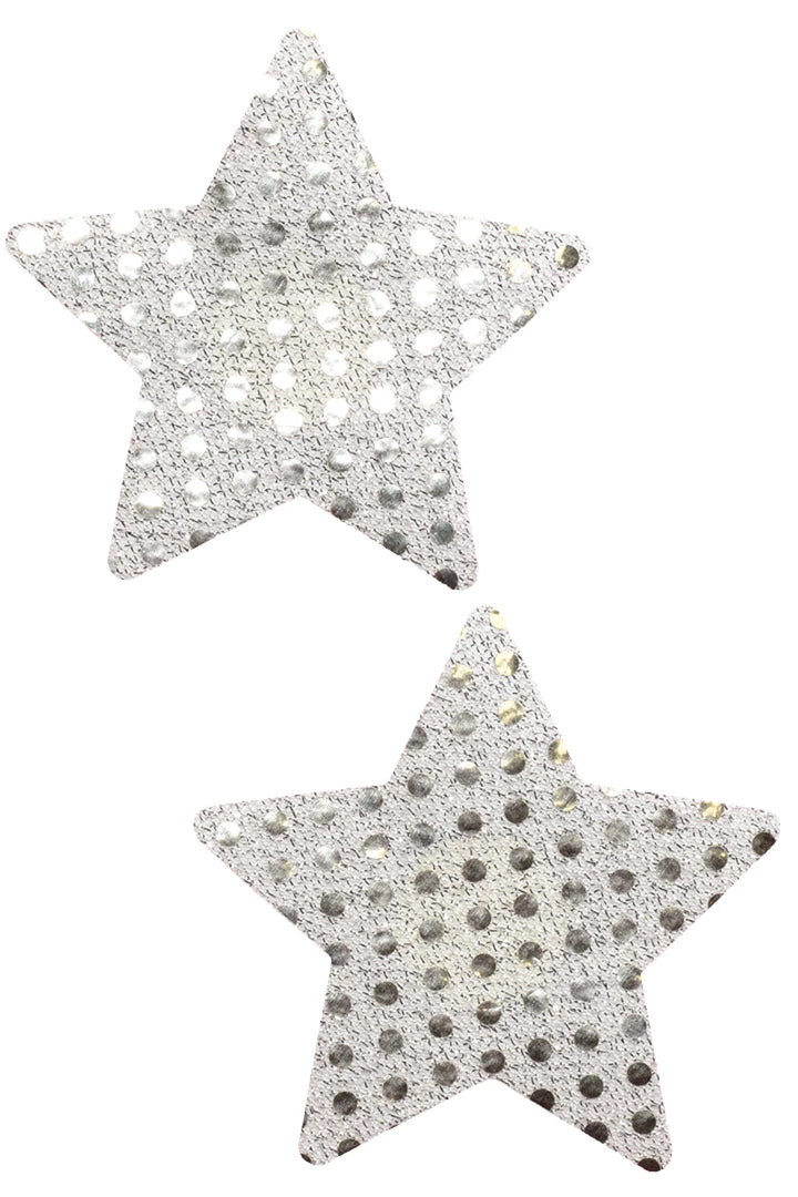 Silver Star Sequin Nipple Pasties. Features self adhesive tape, just peel and stick on clean, dry, oil-free skin!