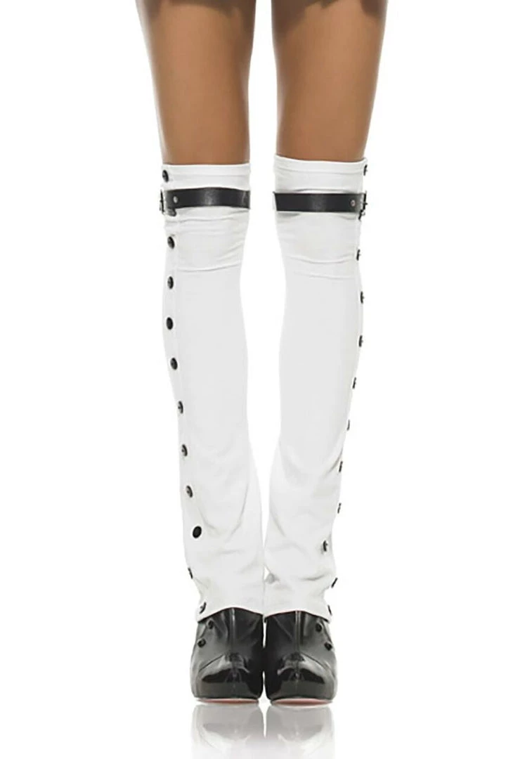 Button Side, Over the Knee Leg Warmers with Buckle Top.