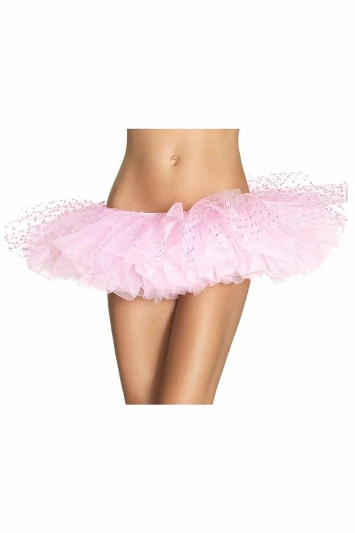 Ultra fluffy, ultra full, ultra short is this tantalizing tulle tutu. You will feel like a fairy in this tutu with it’s flocked polka dot top layer and super comfortable elasticized waistband.Â