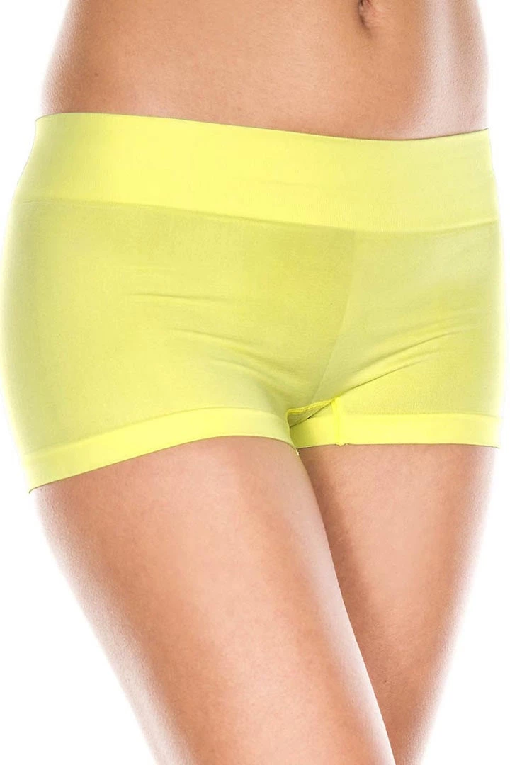 Accessorize your outfit with these Neon Yellow Stretch Booty Shorts that include solid color mid-rise shorts with stretch material. Features a hipster style cut in back.
