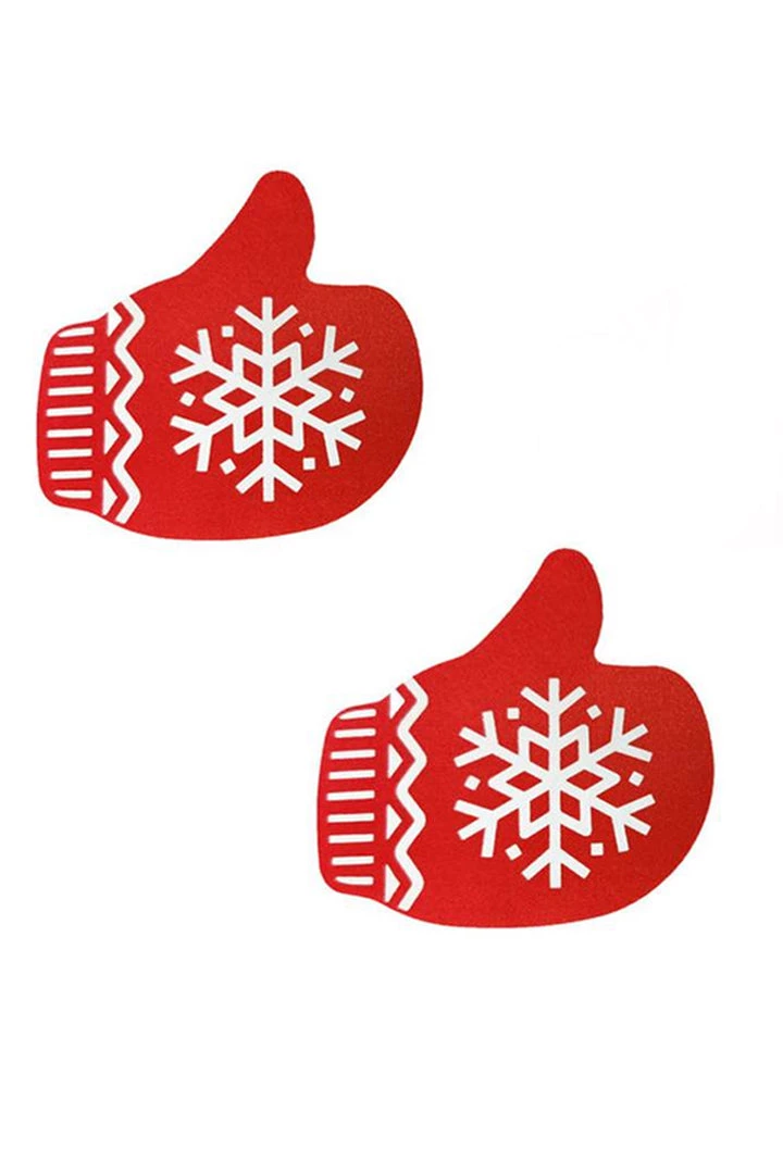 Get in the holiday spirit with these Christmas Gloves Nipple Pasties made of a soft and silky satin material. These breast pasties feature self adhesive tape making for secure and comfortable wear.