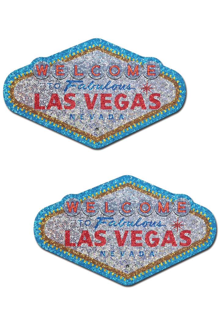 What happens in Vegas doesn’t stay in Vegas if you post a selfie wearing these Welcome to Las Vegas Nipple Pasties that feature hand made in the USA soft form-fitting material that forms seamlessly to curves and resists wrinkling over hardening nipples. Peel and stick on clean, dry skin. Features latex-free, medical grade, waterproof adhesive that will stay securely in place all day and all night! What are pasties? Nipple pasties are like fun nipple stickers for your breasts! Wear boob pasties with a sheer outfit, bikini, lingerie, or conceal them for bedroom play!