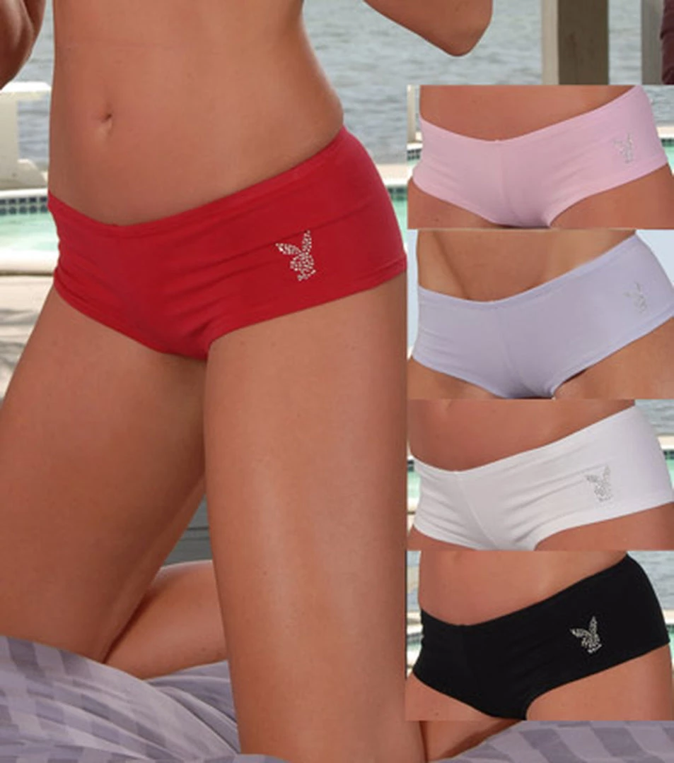*Playboy Boy Shorts Endowed with Playboy Rabbit Logo in Rhinestones