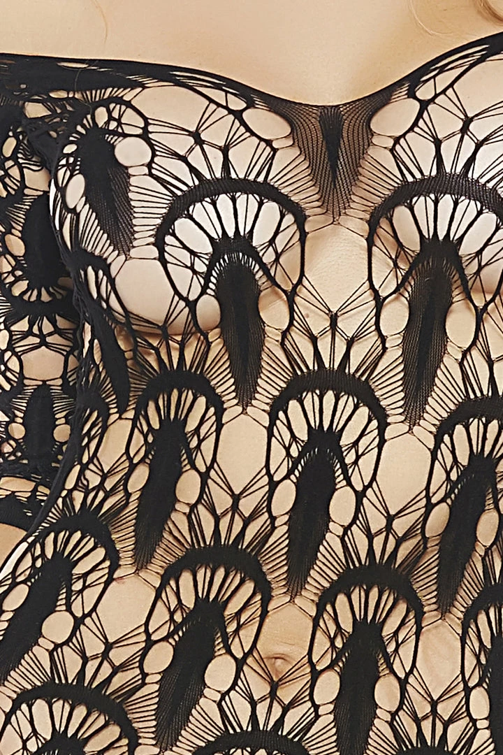 This Feathered Black Bodystocking Dress is the object of our desires! A black stretch net bodystocking dress is already a seductive piece but with an off-the-shoulder design and gorgeous feathered pattern, it will boost anyone’s sex appeal! Flaunting your bod in this lightweight and transparent dress will make you feel as good as you look! It comes with three-quarter length sleeves, and stretch nylon so you can guarantee that you’ll also be snug and comfortable while you are dressed to kill!