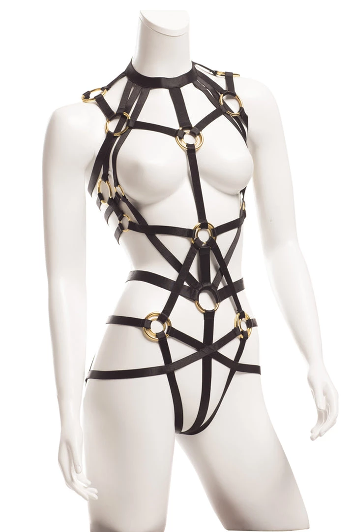 Willingly relinquish your power in this Dom Strappy Teddy With O Ring Detail that features high quality thick straps with sturdy gold O-ring details.