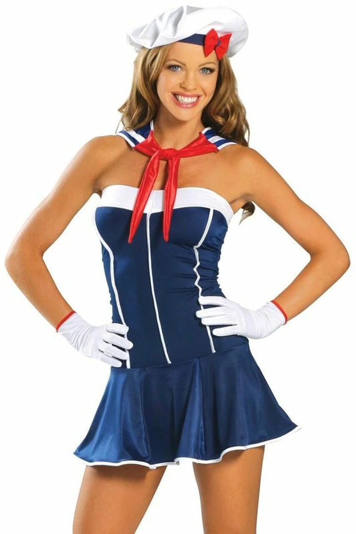 This sexy Anchors Away Sailor Costume probably is one that most would see sailors wearing on a naval vessel. It surely would add a little spice to that ship and to those sailing along with you on the seven seas seeing the world. This hot costume will certainly make you the talk of the party and some party revelers will surely want to escape away on a private vessel with you.