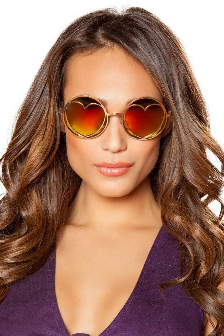 Whether youβre wishing to put the perfect finishing touch on your Halloween costume or want to celebrate your love of the hippie generation, these heart-shaped glasses offer a stylish solution. These cute gold glasses feature brown-tinted lenses on a gold metal frame with a heart shape inside a circle shape for an authentic look that helps you spread peace and love.