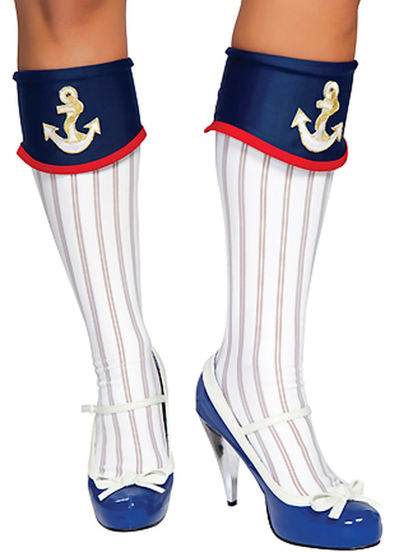 Smooth Sailing Knee Highs with Flap and Embroidered Anchor Detail. Made in USA