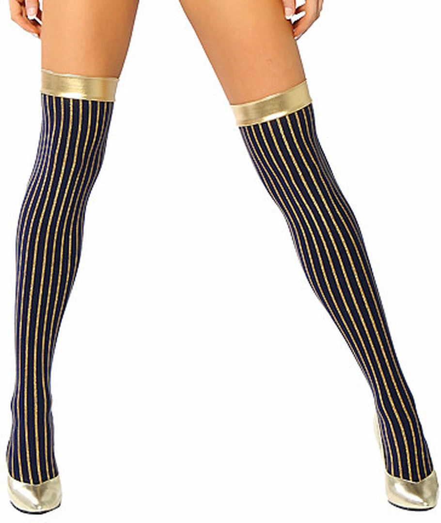 Gold Striped Leggings with Gold Trim.