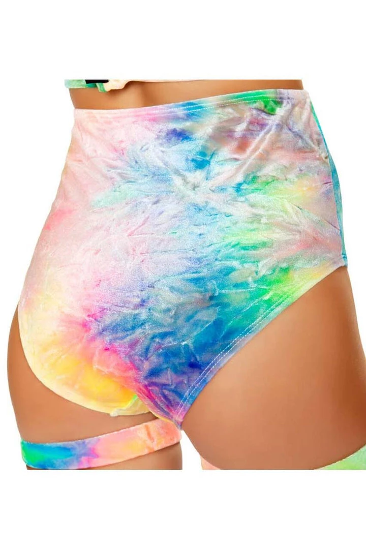 Flaunt your festival cheer wearing these cute tie dye high waisted lingerie shorts from Roma Costume. These sexy shorts feature a nice full covered front with a cheeky cut back to beautifully show off your derriere. The super-soft, multi-colored fabric feels great against your skin and stretches to conform to your shape.
