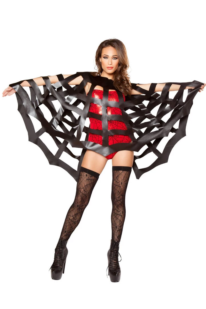 This black wet look webbed cape is the perfect addition to your sexy superhero costume this Halloween.