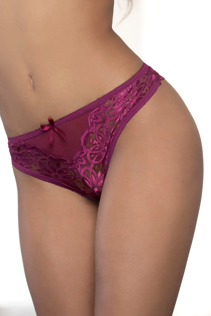 This mesh and lace back panty features a cheeky cut back and a mini satin ribbon bow applique.
