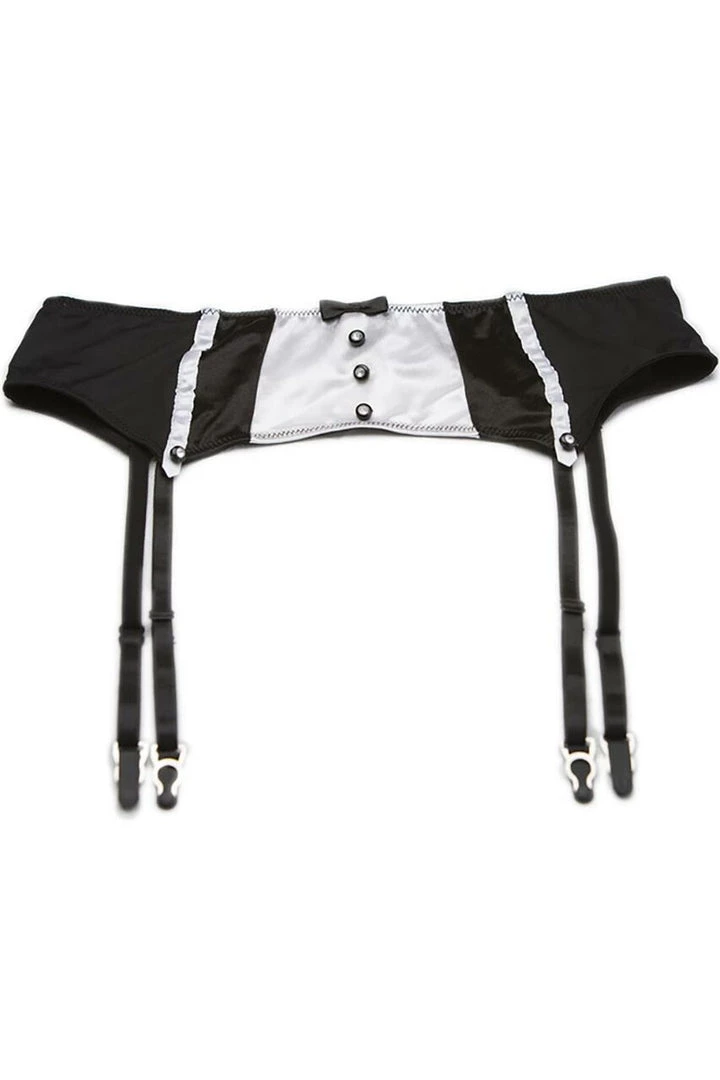A matching piece to the Tuxedo Corset, wear the Tuxedo Garter Belt Plus. Whether you’re up for a night of role play or playing the sexy maid for your lover, the Tuxedo Garter Belt is a sexy style that will show off your legs.